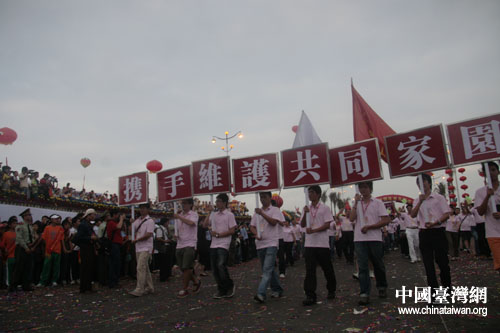 兩岸大學(xué)生組成的方陣通過(guò)巡游主席臺(tái)