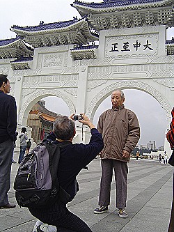 “大中至正”牌匾即將拆除,不少民眾搶在拆除前夕拍照留念。(臺灣“中時電子報(bào)”圖)