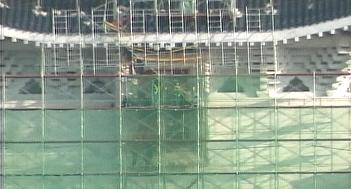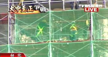 中正紀(jì)念堂牌匾字體拆卸工程最快今晚完工。(臺灣TVBS圖)