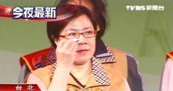李安妮在臺聯(lián)黨造勢晚會上落淚。(臺灣TVBS圖)
