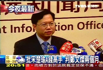 中國臺灣網12月20日消息 據(jù)臺灣“中央社”報道,前民進黨秘書長李逸洋(現(xiàn)任臺當局“內政部長”)、前文宣部主任鄭文燦(現(xiàn)任海基會副秘書長),被控2005年間指稱親民黨主席宋楚瑜“A錢(通過不正當手段撈錢)高手”涉加重誹謗自訴案。臺北地方法院今天判處鄭文燦有期徒刑4個月,減為2個月,如易科罰金以新臺幣900元折算1天;李逸洋無罪。全案仍可上訴。