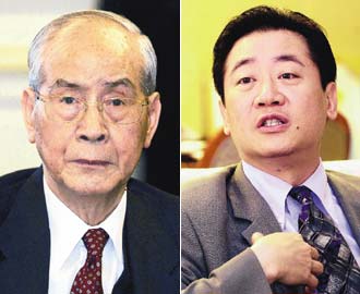 涉嫌掏空萬泰銀行,許勝發(左)、許顯榮父子遭臺檢調限制出境。(聯合報圖)