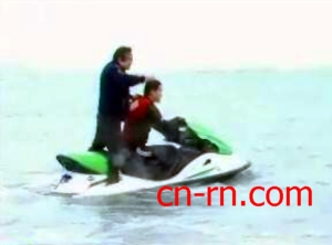 連忙爬上水上摩托車,拖回岸邊。