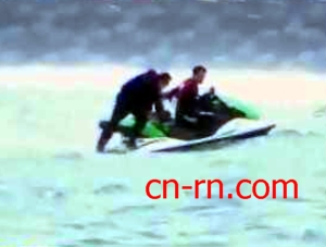 王世堅乘水上摩托車出海。