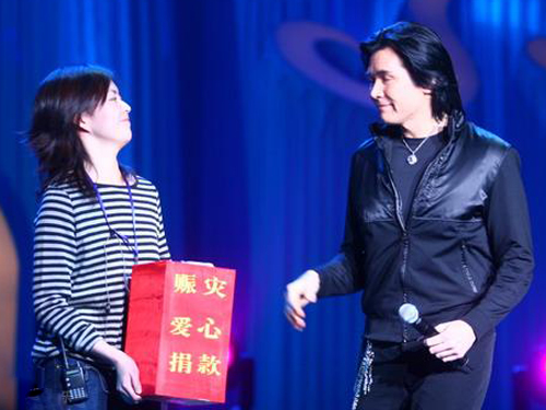 “愛(ài)心大使”費(fèi)翔向?yàn)?zāi)區(qū)捐款。