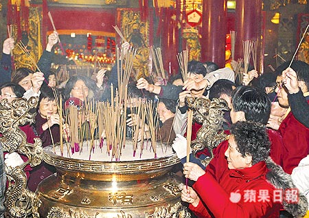 臺中市南天宮涌進500人搶頭香。(以上圖片來源:蘋果日報)