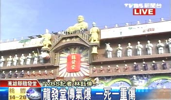 下午一時,龍發堂收容人準備分批到6樓浴室洗澡,管理人員釋心秋法師打開浴室隔壁熱水間瓦斯,卻忘記再上鎖,50歲陳姓收容人離開浴室,34歲梁姓收容人尾隨,陳姓收容人突然轉入熱水間,拿出預藏的打火機,引爆瓦斯自殺身亡,梁姓收容人被波及燒傷,送醫后已無大礙。