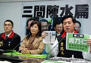 國民黨“立法院”黨18日再度針對臺當局籌設鐽震公司發表看法并三問陳水扁,同時呼吁“國防部長”李天羽勿成“A錢的幫兇”。臺灣東森新聞記者朱家彥攝