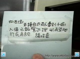 中國臺灣網(wǎng)2月21日消息 據(jù)臺灣東森新聞報道,臺灣屏東一名竊賊在住家公寓樓梯間貼警告紙條,提醒有小偷,并揚言如再遇到打死再說,經(jīng)調(diào)查,原來這名竊賊的家也被偷過,他才貼紙條警告其它小偷別再來。