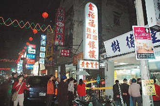 不少民眾在遭搶劫銀樓外圍觀 (臺灣《聯(lián)合報》圖片)