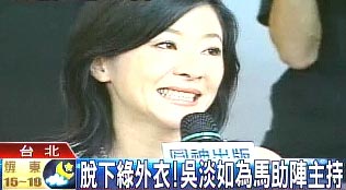 報道稱,不過吳淡如現在決定脫下綠色外衣,在馬蕭3月8日重頭大戲,高雄婦女節晚會中現身擔綱主持。國民黨文傳會主任賴素如說:“至少她愿意為我們的活動來主持,這都是以前支持過民進黨,曾經支持過陳水扁的人。”(高大林)