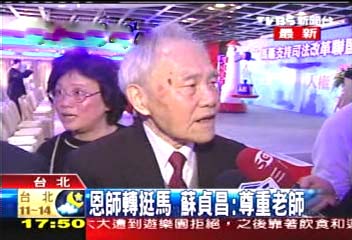 呂秀蓮、張俊雄、蘇貞昌的老師姚瑞光,表態支持馬英九(圖片來源:TVBS)