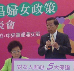 謝長廷在婦女節前夕公布婦女政策,承諾當選后絕對讓女性享有充分參與公共決策、安心環境、經濟安定等等幸福,當選后將為女性創造一百萬個就業機會,首次來到謝總部為謝長廷背書的呂秀蓮則說太少了。