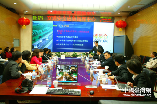 參訪團一行聽取北京大容量快速公交運營系統的情況介紹