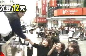 這輛半罩式的防彈車唯一的缺點是車身太高,馬英九必須一手抓著玻璃,彎下腰把自己懸吊在車外才能跟民眾握到手。馬英九說,這讓他的手快要抽筋了,還差點閃到腰。(周先)