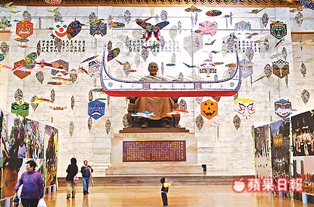 報道說,從元旦開展的“民主開門,自由風(fēng)吹”特展3月31日結(jié)束,臺灣“二二八基金會”將圍繞在蔣介石銅像外的300多個風(fēng)箏、臉譜、蘭嶼拼板舟拆除,但是綁著抗議頭帶的展示架以及巨幅的民主墻展板依然留在原地。“二二八基金會”組長林辰峰強(qiáng)調(diào),銅像大廳的規(guī)劃目的不是“去蔣”,而是“空間解嚴(yán)”。