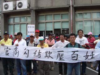 報道稱,來自臺中縣東勢鎮大甲溪畔數百名農民和住戶,7日下午搭乘4部游覽車,浩浩蕩蕩到臺中市樂群街第三河川局抗議,指稱臺當局突然行文,揚言強制拆除,根本就是官逼民反。