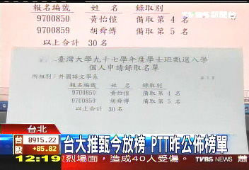 據(jù)臺(tái)灣媒體報(bào)道,原本今天上午才公布新生錄取榜單的臺(tái)灣大學(xué),沒(méi)想到昨天就有人“替他們提前做了工作”。昨天上午,在島內(nèi)一家知名網(wǎng)站上出現(xiàn)了臺(tái)灣大學(xué)的榜單,此事立刻引起了各方的注意。