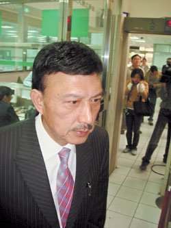 選戰(zhàn)期間余天遭控涉及組織犯罪、恐嚇、妨害名譽及違反“選罷法”等案,昨日前往板橋地檢署應訊。(臺灣《中國時報》圖片)