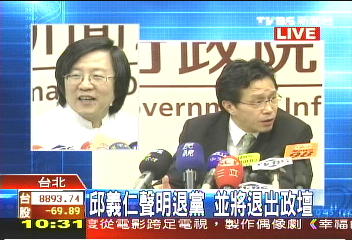 中國臺灣網5月5日消息 據臺灣TVBS電視臺報道,臺當局“行政院”今天上午召開“院會”,“副院長”邱義仁請假未上班,由“新聞局長”謝志偉代為發布退出民進黨的聲明。