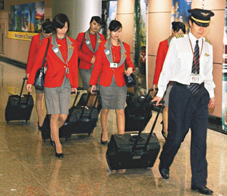 處理善后的遠(yuǎn)東航空公司機(jī)組人員昨晚面色凝重通過桃園機(jī)場(chǎng)入境大廳。臺(tái)灣《聯(lián)合報(bào)》記者陳嘉寧攝