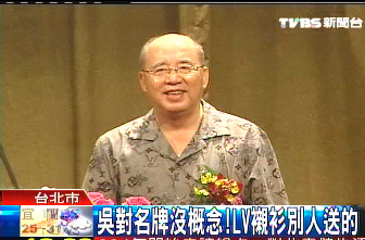 中國臺灣網(wǎng)6月7日消息 據(jù)臺灣TVBS電視臺報道,中國國民黨主席吳伯雄,昨晚和僑胞餐敘,難得穿著一件帶有LV 標識的大花襯衫,相當搶眼。有臺媒說,這件名牌襯衫要價1.3萬元(新臺幣,下同),但他的兒子國民黨籍“立委”吳志揚說,父親對于名牌實在沒概念,根本不可能自己去買這種衣服,襯衫應該是人家送的,還笑稱說不定還是仿冒品。