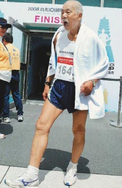 參賽選手中,年紀最小的是12歲、目前就讀博愛小學的詹鈞年,年紀最大的則是92歲再度挑戰(zhàn)體能極限的彭宏年。連續(xù)4年都倒著跑的薛慶光也出現(xiàn)在會場,他笑說,他已經(jīng)預約101次,每年都要來。