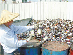 提神飲料已造成臺灣地區新的環保問題,對環保志工而言,大量的回收空瓶也不大好處理。臺灣《中國時報》資料照片