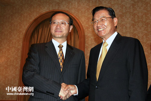 江丙坤10日在此間會見了大陸居民赴臺旅游首發交流考察團團長、海峽兩岸旅游交流協會會長邵琪偉一行。