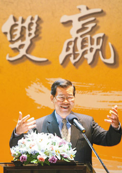 蕭萬長昨晚參加臺商中秋聯誼活動,談到經濟話題興致很高。