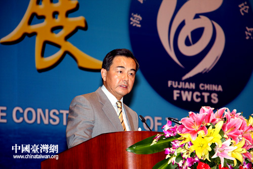 中共中央臺辦、國務院臺辦主任王毅在7日舉行的第三屆“海峽西岸經濟區論壇”開幕式上發表演講并受權宣布促進兩岸交往的新措施(攝 李徽)