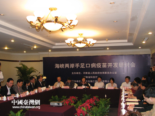 中國臺灣網9月25日消息 由河南省臺辦、河南省科技廳聯合主辦的“海峽兩岸手足口病疫苗開發研討會”今天在河南鄭州召開,來自海峽兩岸的20多位手足口病疫苗開發領域專家學者參加了研討會。河南省臺辦主任宋麗萍、省科技廳副廳長馬世民等和相關部門負責人出席了會議。