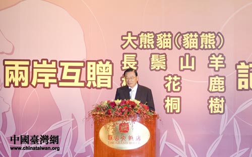 兩岸互贈珍稀動植物記者會今天在臺北舉行。這是陳云林在致辭。中國臺灣網 田云鵬攝