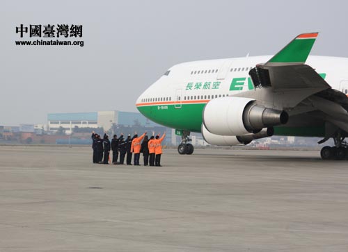 12月23日,成都雙流機場,搭載贈臺大熊貓“團團”、“圓圓”和珙桐樹苗的臺灣長榮專機準備起飛。中國臺灣網 田云鵬 攝