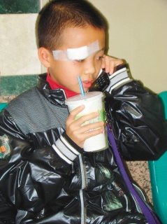 大陸旅游團團員傷者徐思倫,打電話向親戚報平安。(臺灣《聯合報》圖片)