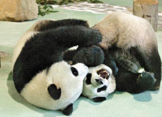 今天是臺(tái)灣春節(jié)假期最后一天,臺(tái)北木柵動(dòng)物園涌進(jìn)看大熊貓人潮,圖為團(tuán)團(tuán)、圓圓快樂地在一起玩。來源:臺(tái)灣《聯(lián)合晚報(bào)》
