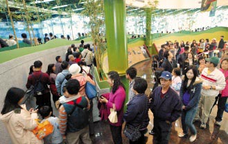 今天是臺(tái)灣春節(jié)假期最后一天,臺(tái)北木柵動(dòng)物園涌進(jìn)看大熊貓人潮,圖為大批民眾排隊(duì)參觀。來源:臺(tái)灣《聯(lián)合晚報(bào)》