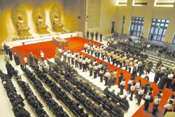 臺(tái)灣法鼓山創(chuàng)辦人圣嚴(yán)法師3日?qǐng)A寂,4日移靈金山法鼓山世界佛教教育園區(qū)大殿供信眾瞻仰,一早信眾陸續(xù)前往瞻仰圓寂的圣嚴(yán)法師法相。(臺(tái)灣《中國(guó)時(shí)報(bào)》圖片)
