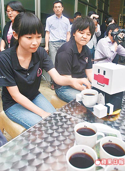 中國(guó)臺(tái)灣網(wǎng)2月25日消息 據(jù)臺(tái)灣《蘋(píng)果日?qǐng)?bào)》報(bào)道,臺(tái)灣彰化縣明道大學(xué)老饕咖啡社和資訊工程學(xué)系合作,昨舉辦“咖啡與機(jī)器人的邂逅”,展示了該系替咖啡社研發(fā)的一具機(jī)器人服務(wù)員。