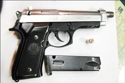 臺(tái)灣一男子因停車(chē)糾紛遭人開(kāi)槍?zhuān)訌棌淖髠?cè)臉頰射入,彈頭卡在右下牙床上,與死神擦身而過(guò),圖為警方起出嫌犯作案用的改造手槍及1顆彈殼。