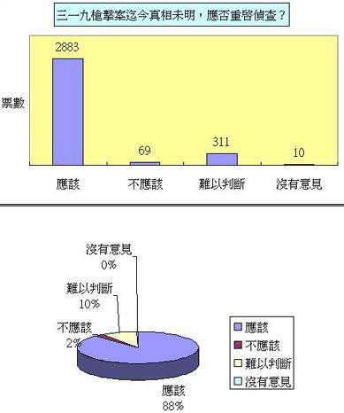 中國臺(tái)灣網(wǎng)3月16日消息 臺(tái)灣“中時(shí)電子報(bào)”在線民調(diào)的統(tǒng)計(jì)結(jié)果顯示,高達(dá)88%的臺(tái)灣民眾贊成重新調(diào)查“319槍擊案”,僅2%不贊成。