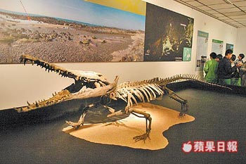 臺(tái)灣自然科學(xué)博物館昨?qū)⒐坯{化石復(fù)原復(fù)制標(biāo)本捐贈(zèng)澎湖科教館展出。來(lái)源:臺(tái)灣《蘋果日?qǐng)?bào)》