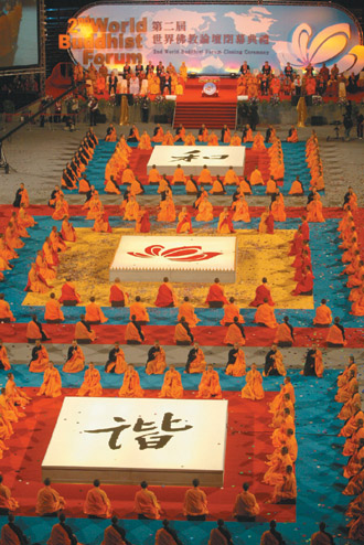 中國(guó)臺(tái)灣網(wǎng)4月2日消息 據(jù)臺(tái)灣《聯(lián)合報(bào)》報(bào)道,“2009年第二屆世界佛教論壇”昨天在臺(tái)北閉幕,為了讓來(lái)自世界各地的法師與貴賓都能看見(jiàn)多元化藝術(shù)之美,主辦單位這次特別在閉幕典禮上安排多場(chǎng)別出心裁的表演。表演者的精湛演出也博得滿堂彩,讓貴賓留下深刻印象。