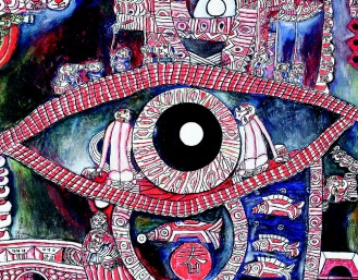 臺灣地區現代版畫先驅江漢東4月1日病逝,他的畫作以簡練線條營造出夢幻般的超現實意境,圖為他的作品《眼睛的造型》。圖片來源:臺灣《聯合報》