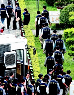 臺(tái)檢調(diào)部門昨天大動(dòng)作搜索臺(tái)北看守所,并且?guī)Щ?名管理員,以及離職管理員、收容人、收容人家屬等人,并連夜調(diào)查,今天移送8人到板橋地檢署復(fù)訊后,檢方向法院聲請(qǐng)羈押。