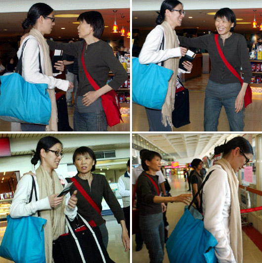 馬英九女兒馬唯中昨天下午搭機(jī)飛往香港轉(zhuǎn)美國(guó)紐約,馬英九夫人周美青親到機(jī)場(chǎng)送行,在辦妥報(bào)到手續(xù)后,入關(guān)前周美青右手搭著馬唯中肩膀臨行交待一番。圖片來(lái)源:臺(tái)灣《聯(lián)合報(bào)》