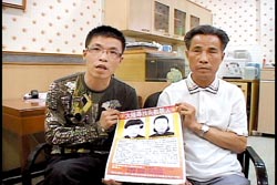 浙江溫州張姓父子拿著舊照片尋找在臺親人。圖片來源:臺灣《中國時報》