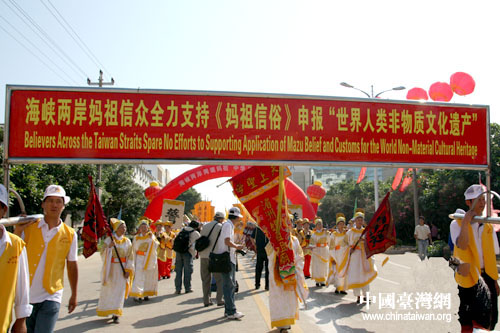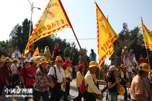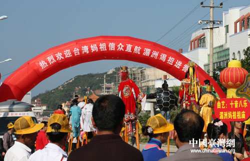 圖為今天抵達(dá)湄洲的臺灣媽祖信眾。(中國臺灣網(wǎng)記者 張弛 攝)