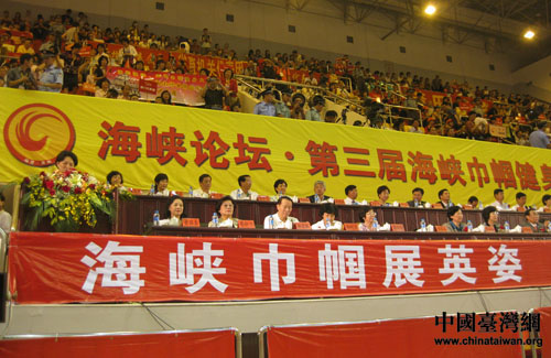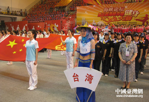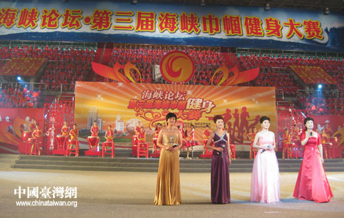 福建省委常委、宣傳部長唐國忠宣布:“海峽論壇·第三屆海峽巾幗健身大賽開幕。”