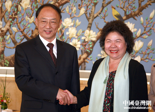 22日下午,中國奧委會主席劉鵬在北京飯店會見了高雄市市長陳菊。(中國臺灣網 田云鵬 攝)